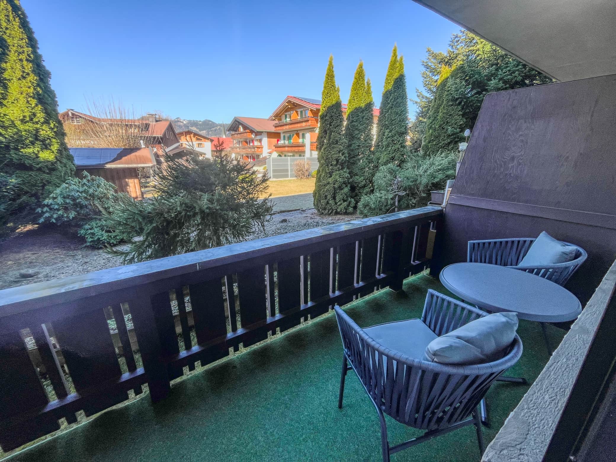 Outside, a furnished west-facing balcony awaits you. From there, you can watch the sunset. Enjoy the fantastic view as a relaxing break after eventful excursions in our beautiful Allgäu region! Whether you reached the Nebelhorn summit casually by gondola or as a seasoned mountaineer, we offer you the perfect holiday experience combining adventure, relaxation, and rejuvenation!